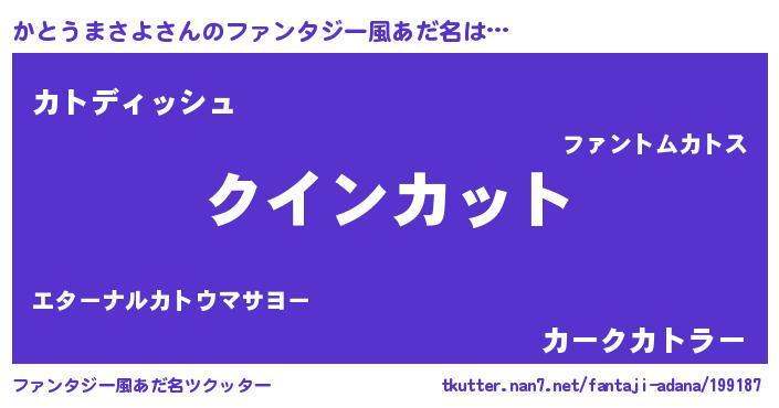 | 男性向けラノベタイトル風あだ名 | 『ノーゲーム・ノーカトウマサヨ』 |