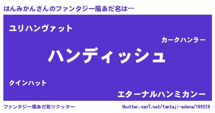 | 男性向けラノベタイトル風あだ名 | 『はんみかんという概念が存在しない退屈な世界 』 |