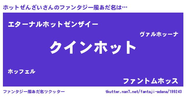 | 男性向けラノベタイトル風あだ名 | 『おまえをオタクにしてやるから、俺をホットぜんざいにしてくれ! 』 |