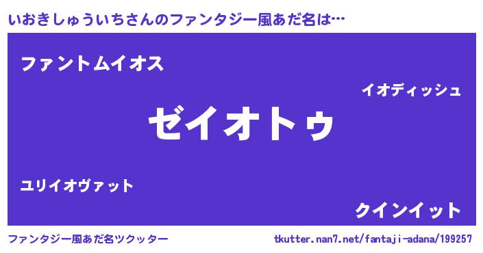 | 男性向けラノベタイトル風あだ名 | 『Re:いおきしゅういちから始める異世界生活』 |