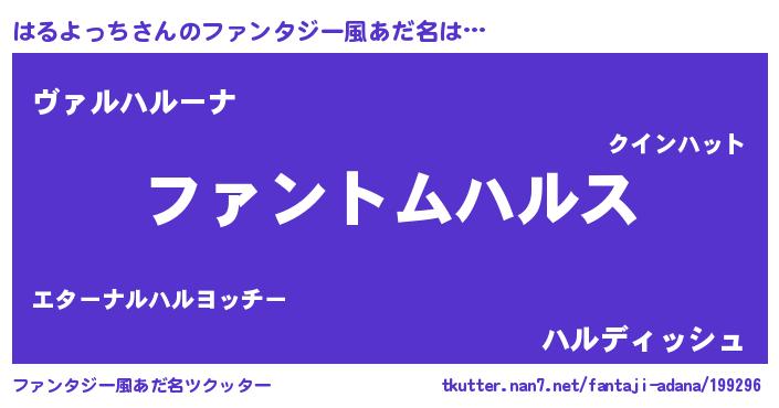 | 男性向けラノベタイトル風あだ名 | 『ダンジョンにはるよっちを求めるのは間違っているだろうか』 |