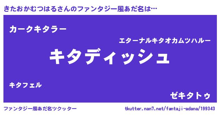 | 男性向けラノベタイトル風あだ名 | 『きたおかむつはるという概念が存在しない退屈な世界 』 |