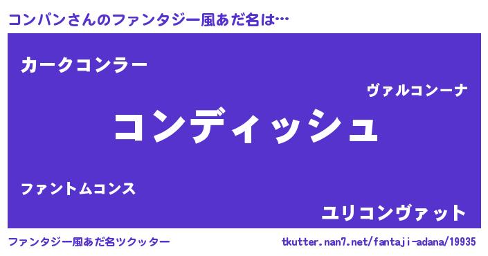 | 胡散臭い通販商品みたいなあだ名 | 『絶対に幸福をもたらす健康食品…その名も「コンパン」』 |