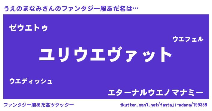 | 肩書あだ名 | 『うえのまなみ大将』『うえのまなみ総統』 |