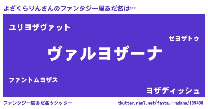 | 男性向けラノベタイトル風あだ名 | 『この素晴らしい世界によざくらりんを!』 |
