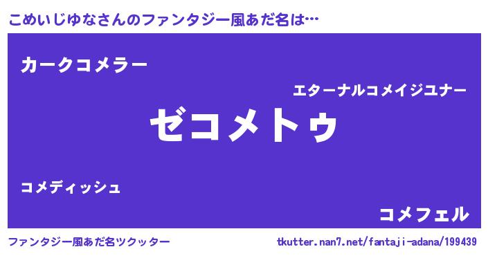 | 男性向けラノベタイトル風あだ名 | 『Re:こめいじゆなから始める異世界生活』 |