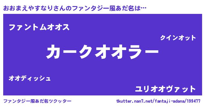 | 欧米人風あだ名 | 『おおまえやすなり・ステッグマイヤー』 |