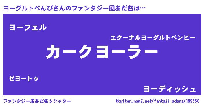 | 男性向けラノベタイトル風あだ名 | 『緋弾のヨーグルトベンピ』 |