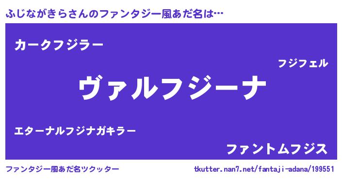 | 男性向けラノベタイトル風あだ名 | 『魔弾の王とふじながきら』 |