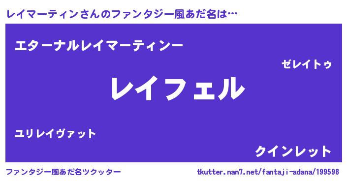 | 男性向けラノベタイトル風あだ名 | 『レイマーティンに滅ぼされるだけの簡単なお仕事です』 |