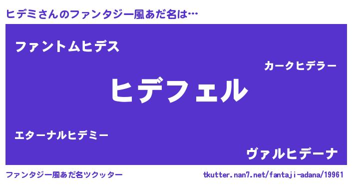 | ヒーロー風カッコイイあだ名 | 『スーパーヒデミ』『幻影騎士ヒデ』 |
