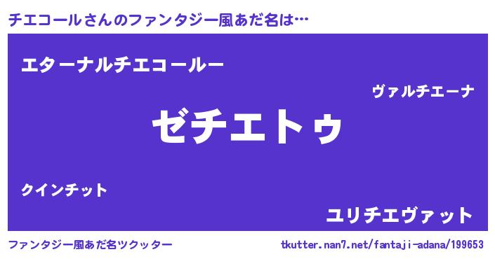 | ヒーロー風カッコイイあだ名 | 『サイバー戦士チエコール』 |