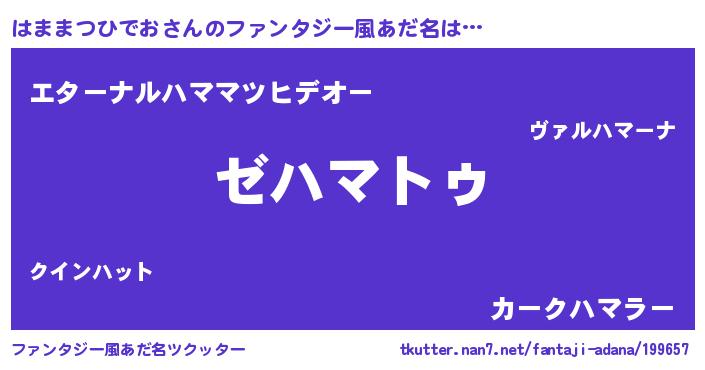 | 男性向けラノベタイトル風あだ名 | 『Re:はままつひでおから始める異世界生活』 |