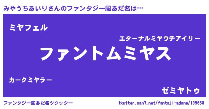| ポケモン風あだ名 | 『ヒミヤウチアイリ』『ミヤチュウ』 |