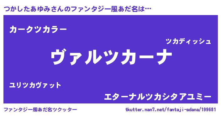 | 男性向けラノベタイトル風あだ名 | 『魔弾の王とつかしたあゆみ』 |