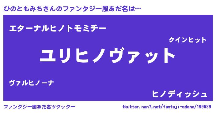 | 男性向けラノベタイトル風あだ名 | 『ひのともみち~年齢イコール彼女いない歴の魔法使い~』 |