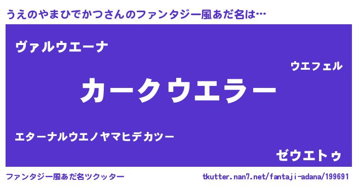 | 意味不明あだ名 | 『住所不定無職うえのやまひでかつ(47歳)』 |