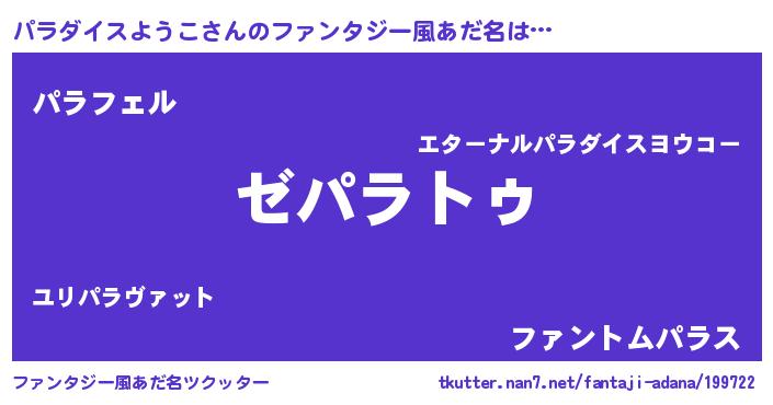 | 男性向けラノベタイトル風あだ名 | 『Re:パラダイスようこから始める異世界生活』 |