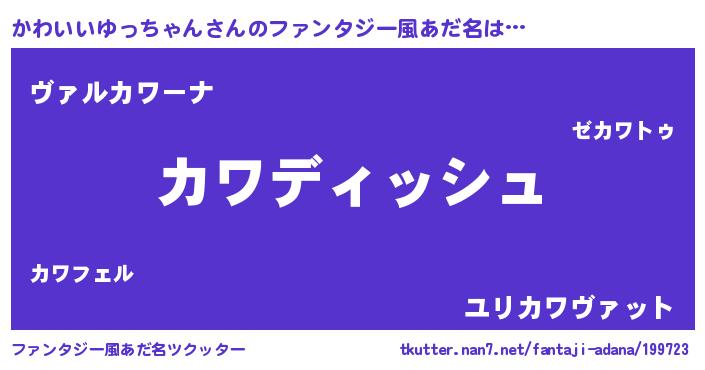 | 女子向けラノベタイトル風あだ名 | 『異世界で失敗しない100のかわいいゆっちゃん』 |