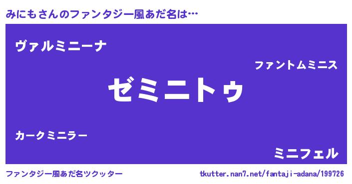 | 男性向けラノベタイトル風あだ名 | 『Re:みにもから始める異世界生活』 |