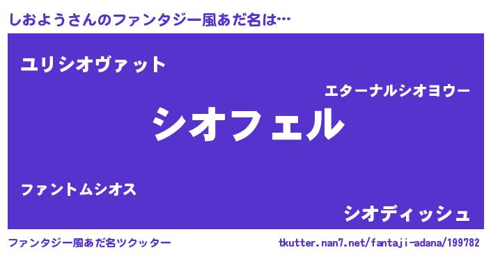 | 男性向けラノベタイトル風あだ名 | 『しおようの憂鬱』 |