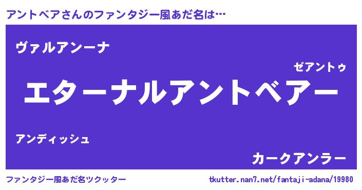| 欧米人風あだ名 | 『アントベアクリステル』 |