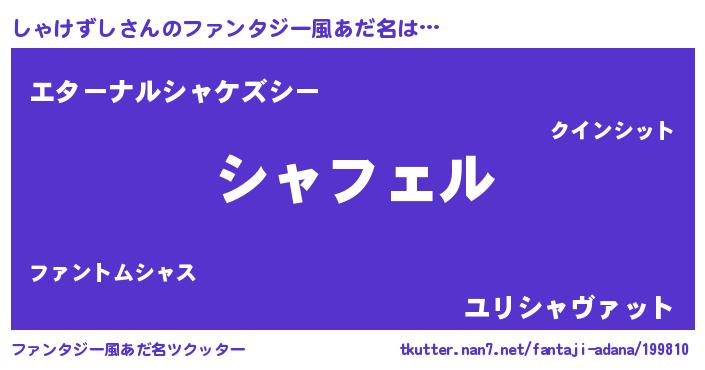 | ヒーロー風カッコイイあだ名 | 『スーパーシャケズシ』『天弓騎士シャ』 |