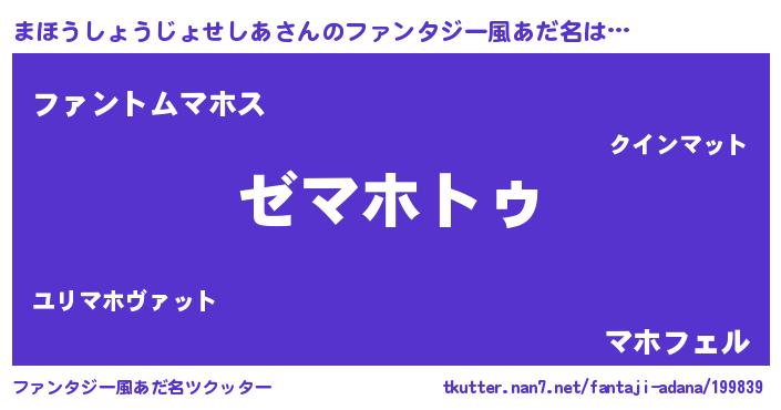 | 意味不明あだ名 | 『自称まほうしょうじょせしあ』 |