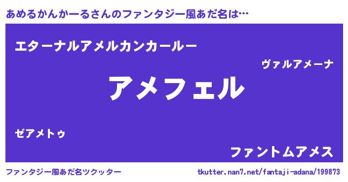 | ポケモン風あだ名 | 『アメチュウ』『アメルダネ』 |