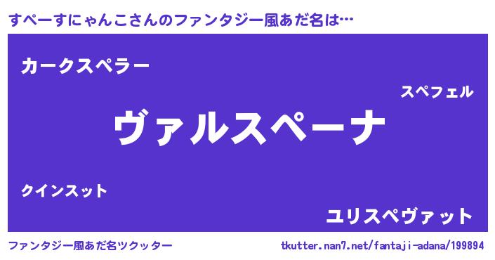 | 男性向けラノベタイトル風あだ名 | 『この素晴らしい世界にすぺーすにゃんこを!』 |