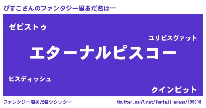 | 意味不明あだ名 | 『ぴすこフォーエバー』『自称ぴすこ』 |