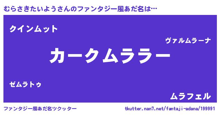 | 男性向けラノベタイトル風あだ名 | 『緋弾のムラサキタイヨウ』 |
