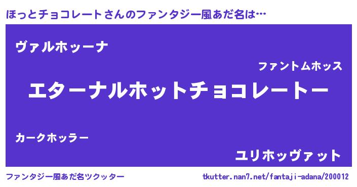 | 意味不明あだ名 | 『ほっとチョコレートフォーエバー』 |