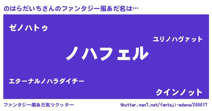 | 胡散臭い通販商品みたいなあだ名 | 『必ず成功するブレスレット…その名も「のはらだいち」』 |