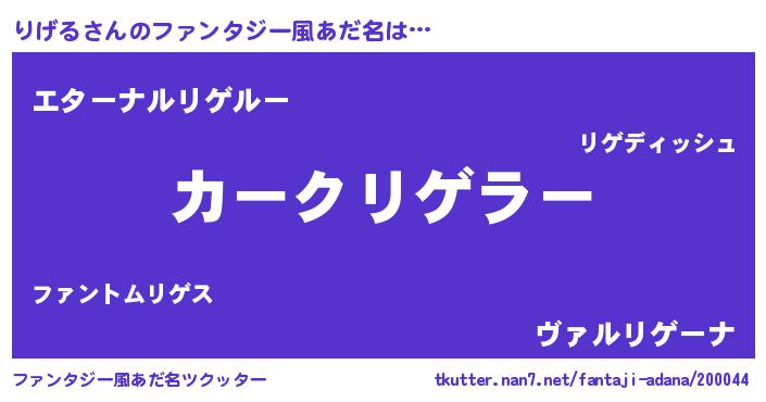 | 欧米人風あだ名 | 『アンジェラ・りげる』 |