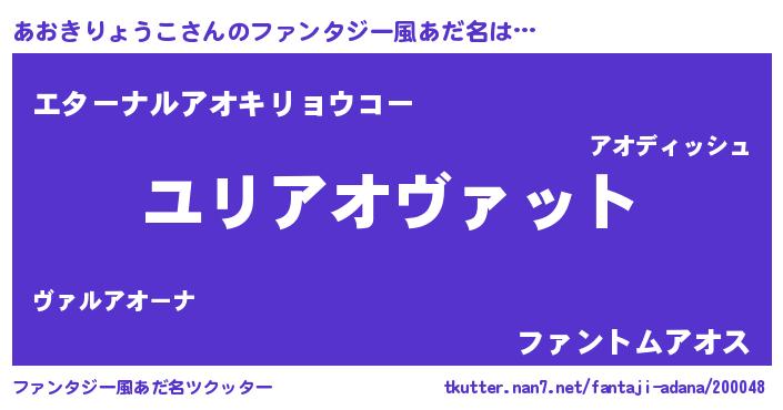| ヒーロー風カッコイイあだ名 | 『ウルトラあおきりょうこマン』 |