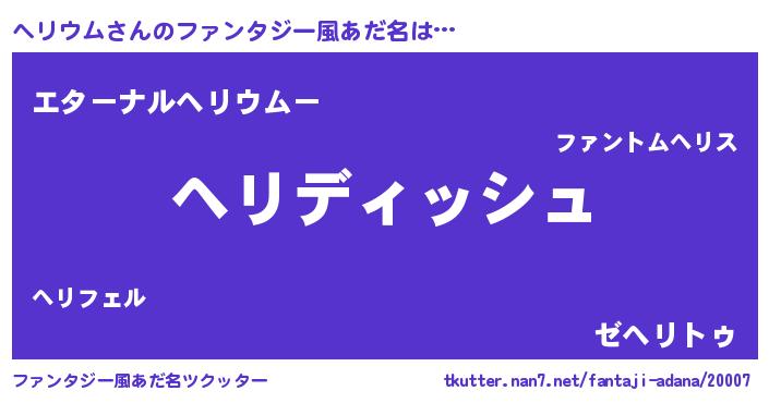 | 胡散臭い通販商品みたいなあだ名 | 『来世でも幸せになれる水素水…その名も「ヘリウム」』 |