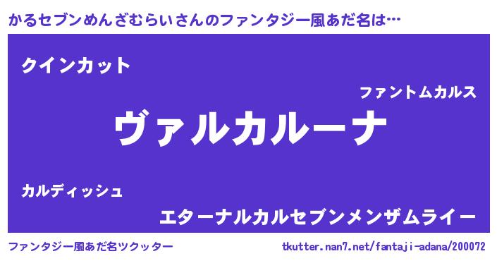 | 料理風あだ名 | 『かるセブンめんざむらいのカルパッチョ風』 |