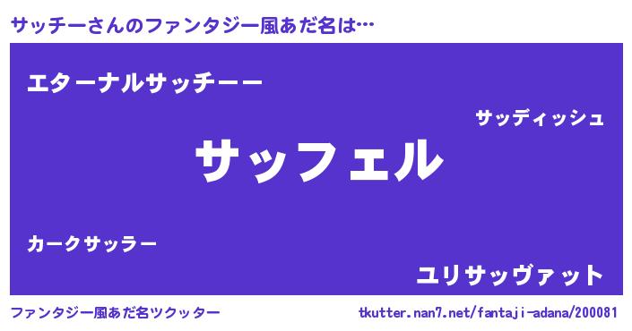 | 意味不明あだ名 | 『ペロリンサッチー』『永久保存サッチー』 |