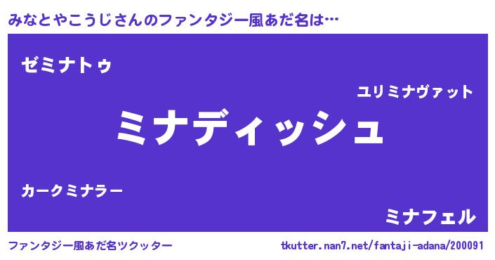 | ヒーロー風カッコイイあだ名 | 『ネオミナトヤコウジ』『仮面ミナダー』 |