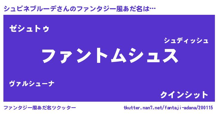 | ポケモン風あだ名 | 『ヒシュピネブルーデ』『シュセウス』 |