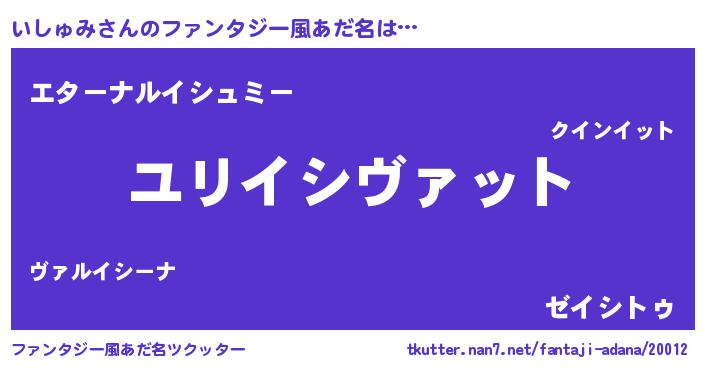 | 男性向けラノベタイトル風あだ名 | 『いしゅみ~年齢イコール彼女いない歴の魔法使い~』 |
