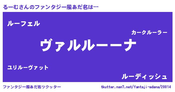 | 男性向けラノベタイトル風あだ名 | 『魔弾の王とるーむ』『るーむの憂鬱』 |