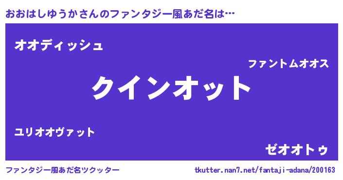 | ヘコむあだ名 | 『おおはしゆうか(笑)』『おおを』 |