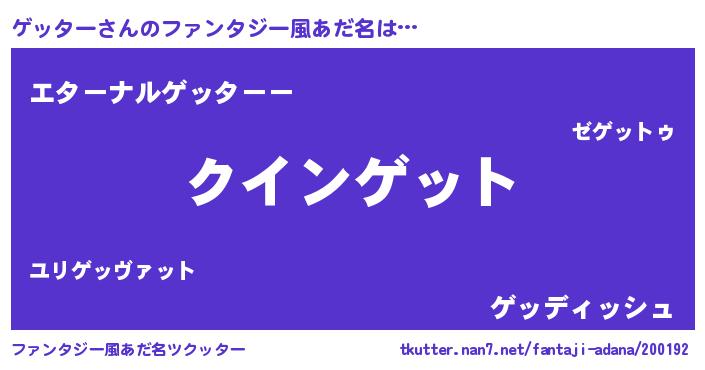 | ヒーロー風カッコイイあだ名 | 『慈愛の使者ゲッター』『ネオゲッター』 |