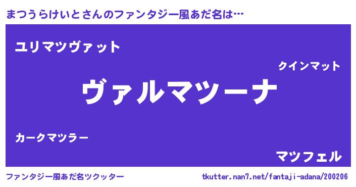 | 料理風あだ名 | 『まつうらけいとのカルパッチョ風』 |