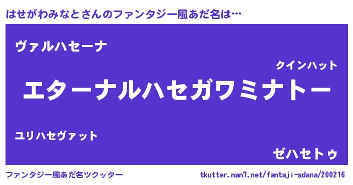 | 意味不明あだ名 | 『はせがわみなとフォーエバー』 |