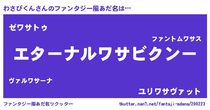 | 欧米人風あだ名 | 『わさびくんクリステル』 |