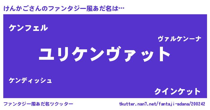 | ヘコむあだ名 | 『けんにー』『けんかご(震え声)』 |
