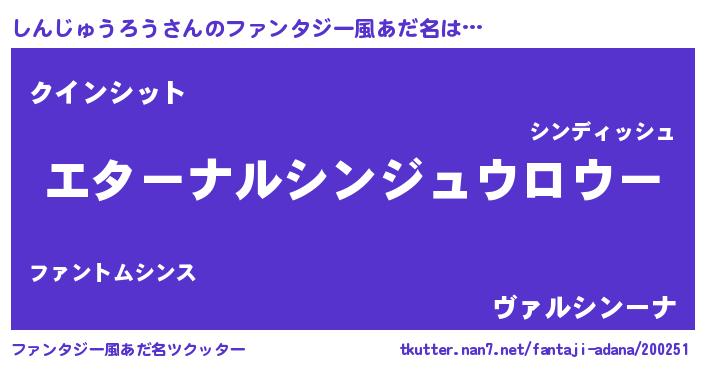 | 意味不明あだ名 | 『しんじゅうろうフォーエバー』 |